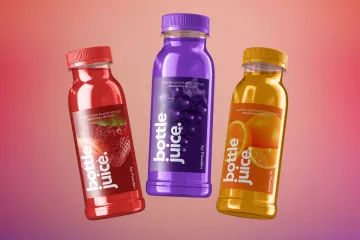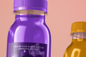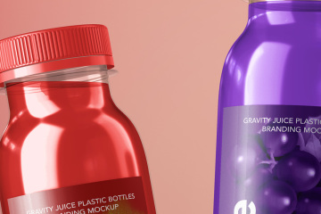 悬空的果汁饮料塑料瓶装包装设计样机模板 Gravity Ju