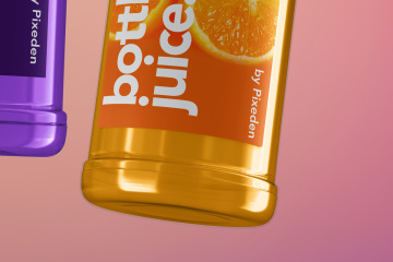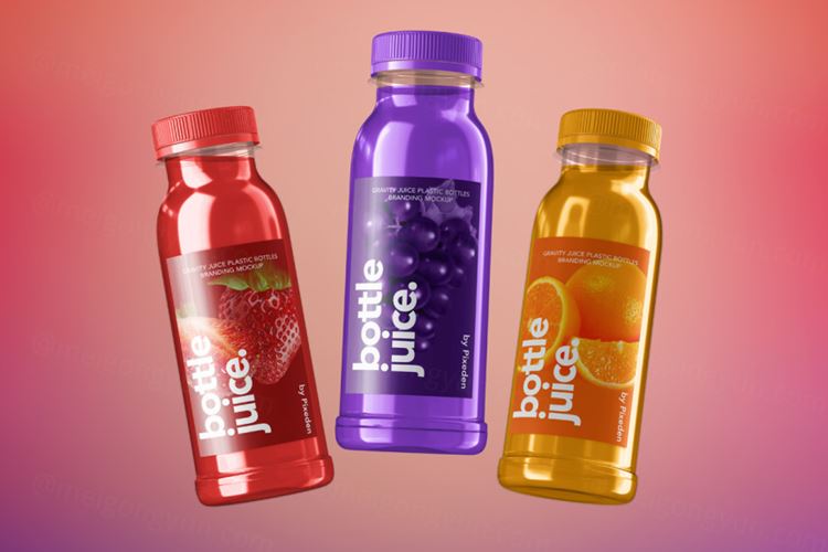 图穷联素材库 » 悬空的果汁饮料塑料瓶装包装设计样机模板 Gravity Ju