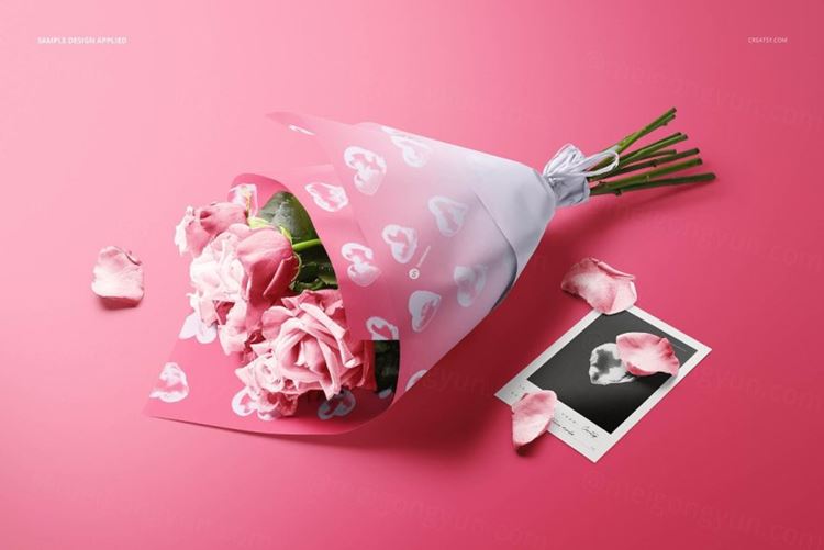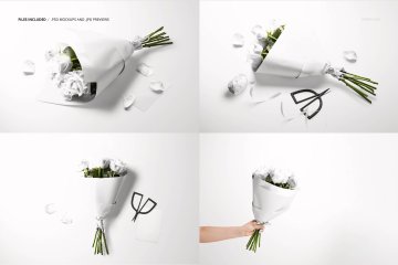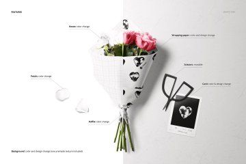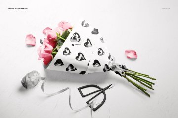 图穷联素材库 » 花店玫瑰花束包装设计提案样机模板 Roses Bouquet