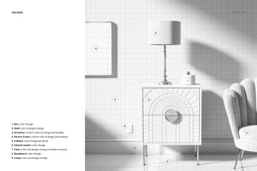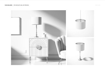 鼓形灯罩灯模板-分层,可编辑的.psd文件,可通过编辑智能对象和颜色层来展示您的自定义设计。