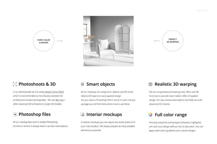 内部场景模板-分层的可编辑.psd文件,通过编辑智能对象和颜色层,准备展示您的自定义设计。