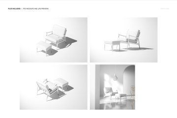 躺椅和凳子模板层-可编辑的.psd文件层,可通过编辑智能对象和颜色层来展示您的自定义设计。