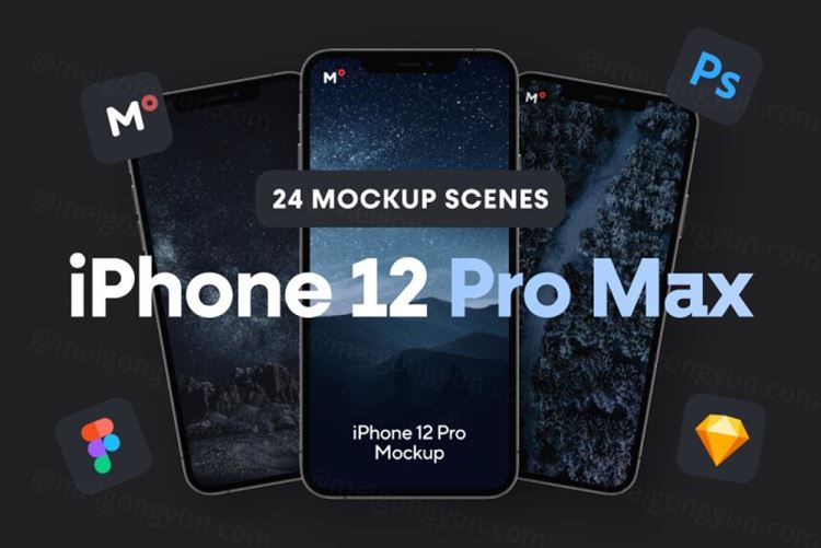 我们选择了最流行的iPhone 12 Pro Max角度,经证实可适合任何演示。通常,该套件包括具有技术精度和逼真的效果的最高标准质量的模型,可方便地打包在Photoshop,Figma和Sketch文件中。