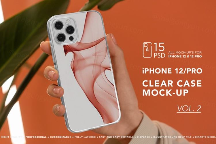 15 PSD iPhone 12和12 Pro保护套样机(带有智能对象);
