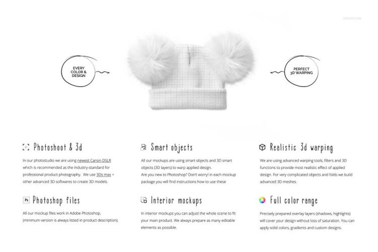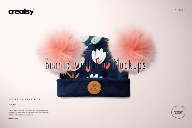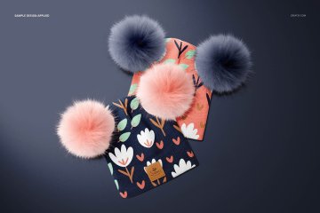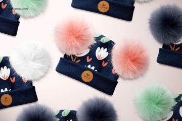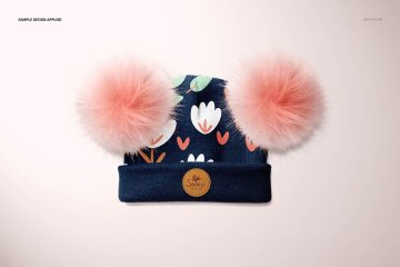 图穷联素材库 » 毛茸茸新儿童婴儿针织毛线帽子设计展示样机模板 Beanie