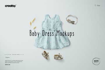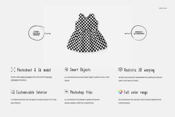 图穷联素材库 » 可爱的女婴礼物连衣裙图案设计展示样机模板 Baby Dres