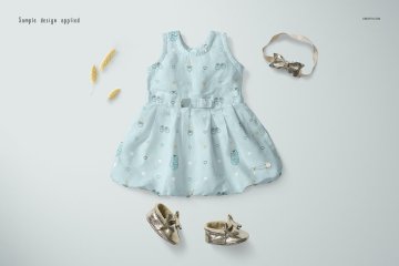 可爱的女婴礼物连衣裙图案设计展示样机模板 Baby Dres