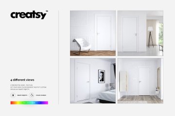 您可以通过智能对象将自己的设计放在门上,还可以更改墙壁(在3个视图中)和椅子(在1个视图中)的颜色;