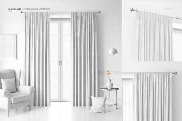 天鹅绒铅笔褶帘模板-分层,可编辑的.psd文件,可通过编辑智能对象和颜色层来展示您的自定义设计。