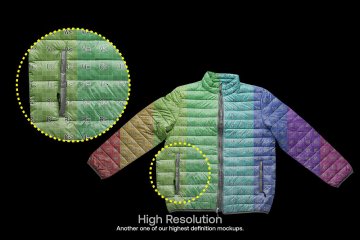 高度可定制的蓬松羽绒夹克样机,对细节无与伦比的关注。轻松设置夹克,拉链和饰边的颜色。包括逼真的位移,以便您的图稿自动与曲面弯曲和折叠。与全面的印刷设计完全兼容。