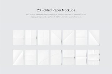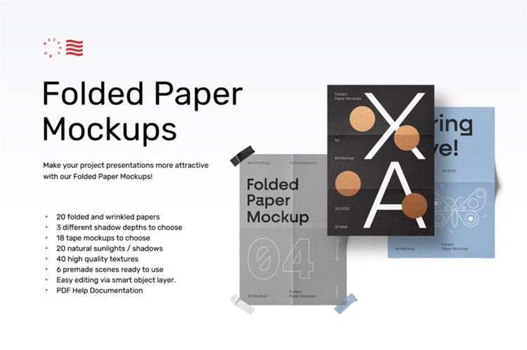 通过我们的折叠纸样机,使您的设计演示脱颖而出!以逼真的方式显示您的海报,信笺,简历或邀请。在每张纸上,阴影和反射都是分开的,这使您可以更改强度和不透明度。借助智能对象层,只需单击几下即可放置您的设计。