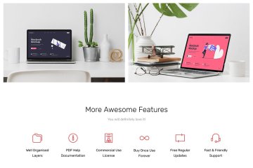 我们的Macbook Mockups-Workspace Mockups Pack使您的网站演示更具吸引力!将设计替换到智能对象中,单击“保存”即可完成。所有的模型都是水平格式,具有300 dpi的高分辨率。您可以裁剪和旋转图像以获得不同的外观。