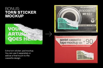 奖金1/额外撕破贴纸。包括psd模型。您可以单独使用它,也可以将其添加到磁带设计的最后一点