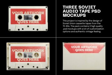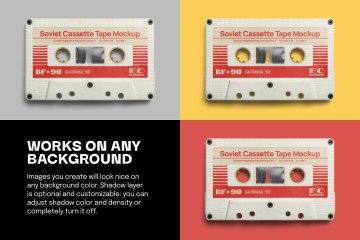 该项目的灵感来自70至80年代苏联盒式磁带的设计。该软件包包含3个高质量的.psd实体模型,具有许多自定义选项和真实的复古感。您可以将设计应用于纸盒标签和封面(J卡),更改纸盒和盒的颜色,控制高光和阴影,使用任何背景。