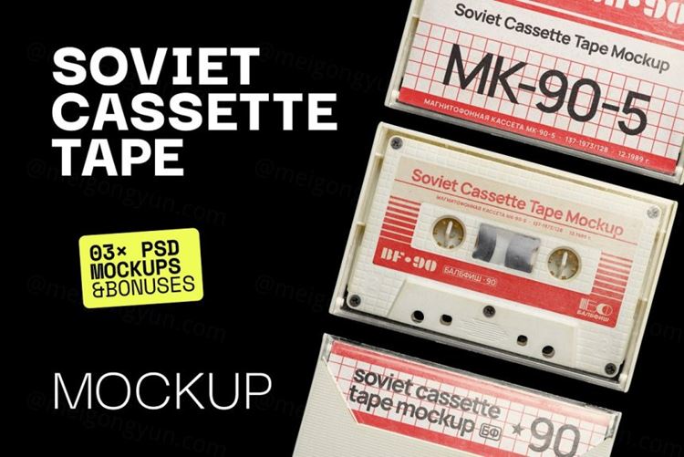 图穷联素材库 » 苏联复古老物件盒式磁带标签封面设计样机贴图模板 Soviet