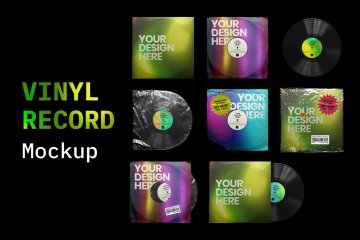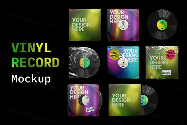 图穷联素材库 » 复古经典老黑胶唱片封面设计样机PSD模板 Vinyl Rec