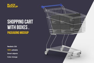 带框购物车样机-分层,可编辑的psd文件,准备通过简单地编辑智能对象和颜色层来展示您的自定义设计。向客户展示您的设计或设计您的投资组合。