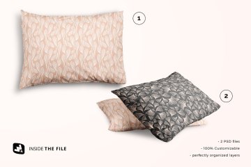 棉质枕套样机套件是我们枕套样机系列的最新产品。独特的设计师枕头是绝佳的家居装饰。在这套棉质枕套样机上展示您美丽的图案和设计既有效又富有创意。该软垫样机套件是多功能的。该套件随附顶视图枕头模型和堆叠枕头模型,可非常有创意地用于许多不同的背景,并可用于创建品牌塑造场景。此坐垫模型集还提供了详细指南,可帮助您像专业人士一样进行编辑。