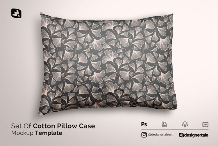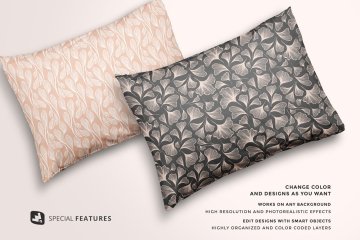 图穷联素材库 » 棉质枕头枕套图案设计提案样机PSD模板 Set Of Cot