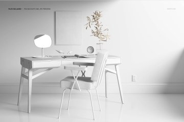 室内装修设计椅子墙面墙纸图案绘画展示样机PSD模板 Inte