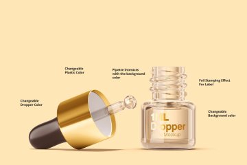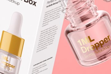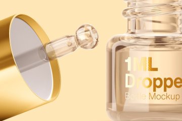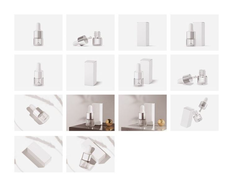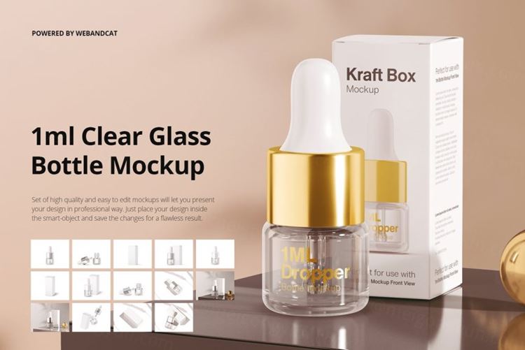 图穷联素材库 » 14款高品质烫金透明玻璃精油滴管瓶包装设计样机模板 1ml