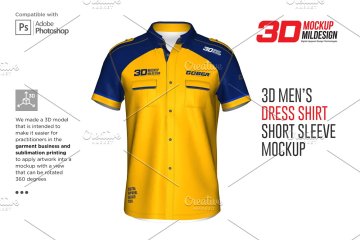 男士正装短袖衬衫镂空模型贴图样机PSD模板 3D Mens