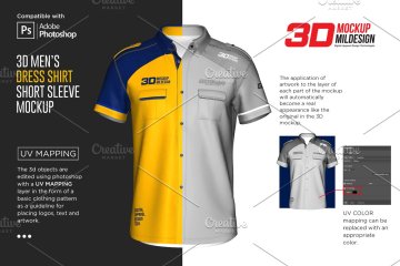 图穷联素材库 » 男士正装短袖衬衫镂空模型贴图样机PSD模板 3D Mens