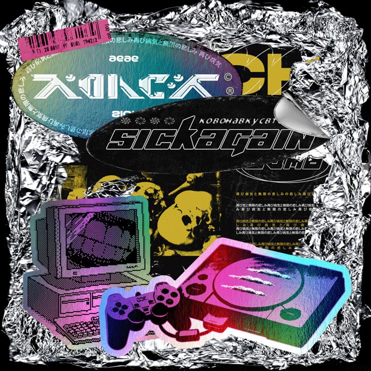 新潮复古光碟封面设计褶皱划痕铝箔锡纸标签贴纸做旧纹理素材合辑