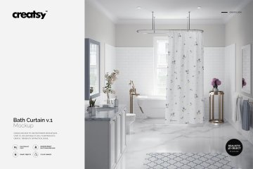 豪华浴帘浴缸毛巾浴室场景装修设计提案样机模板 Luxury