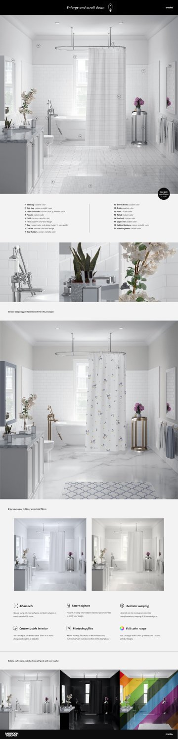 图穷联素材库 » 豪华浴帘浴缸毛巾浴室场景装修设计提案样机模板 Luxury
