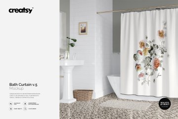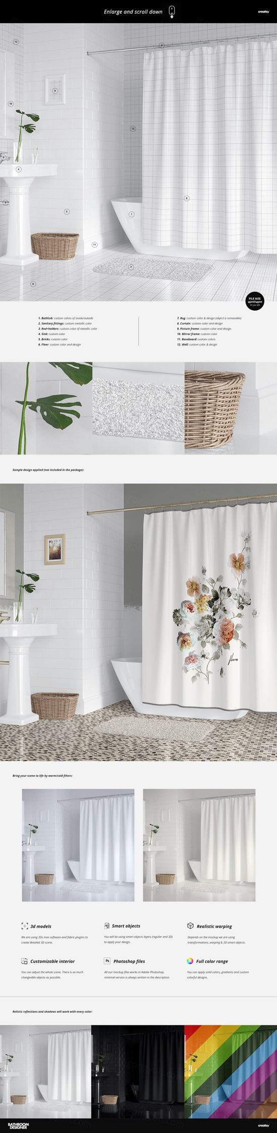 图穷联素材库 » 豪华浴帘地板墙面相框浴缸浴室场景装修设计提案样机模板 Bat