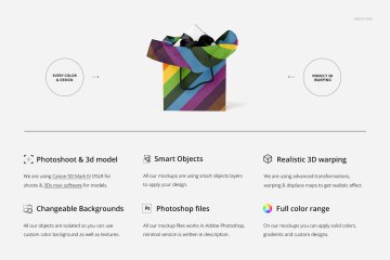 包装包括8个.psd文件以及8个不同角度的纸张,文件规格为:1x 6000x6000、2x 4000x4000、5x 6000x4000 px 300dpi;