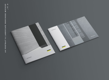 结合了两个方向的A4宣传册样机;纵向和横向适合同时呈现两个设计选项以进行比较。设计师可以使用它轻松地向客户展示不同的选项。可以使用智能对象层自定义Photoshop文件。