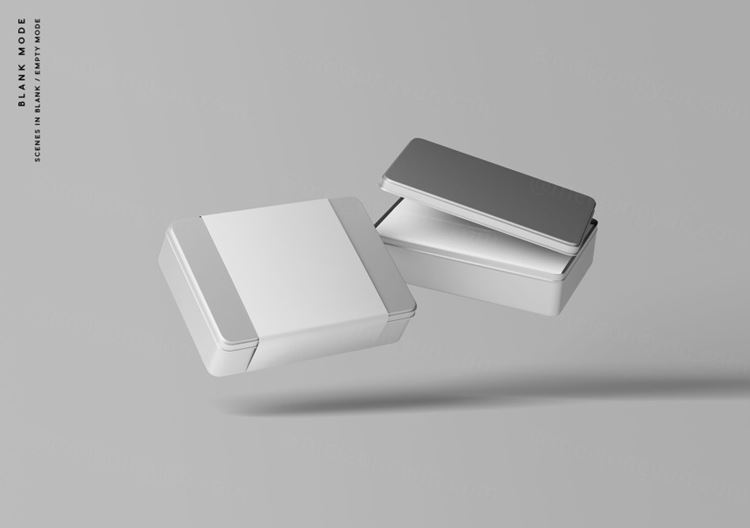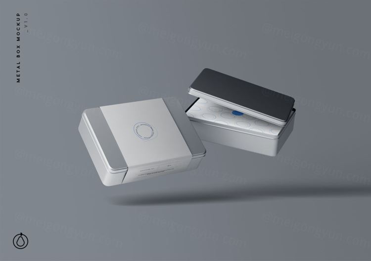 图穷联素材库 » 金属盒子产品包装设计贴图样机PSD模板 Metal Box