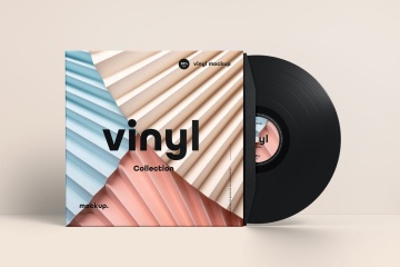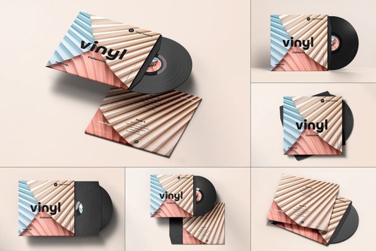 图穷联素材库 » 乙烯基音乐唱片电影碟片封套包装设计提案样机PSD模板 Vin