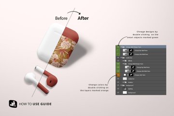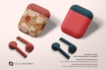 Airpods既便携又智能。而且,它们已成为我们生活中最常用的物品之一。这个airpod案例模型是一种现代且非常相关的方式来展示您的图案设计。airpod机壳模型既专业又简单,但可以有效地展示品牌或标签设计。该品牌样机配有可换色的听筒。基本图像具有高分辨率,并具有极佳的真实感效果。案例模型层是高度组织的并使用颜色编码。该耳机样机还附带了详细的指导视频,使工作过程变得容易。