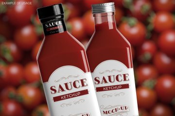 图穷联素材库 » 厨房酱汁瓶醋瓶番茄酱酱油瓶调料瓶包装设计样机PSD模板 Sa