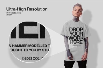 图穷联素材库 » 街头潮牌服饰刺青纹身女性模特T恤设计提案样机模板 Gilde