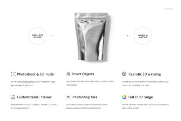图穷联素材库 » 真空自封袋铝箔袋食品金属包装袋设计样机模板 Stand Up