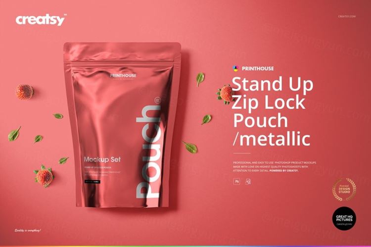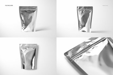 真空自封袋铝箔袋食品金属包装袋设计样机模板 Stand Up
