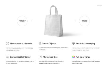 无纺布编织环保杂货店购物袋品牌VI提案样机PSD模板 Non