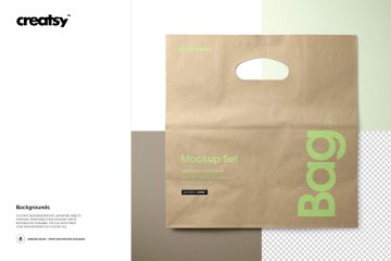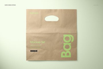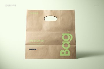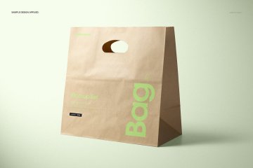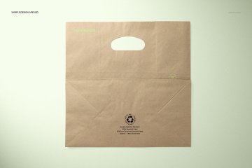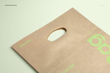图穷联素材库 » 牛皮纸环保杂货店手提购物袋品牌VI提案样机模板 Die Cu