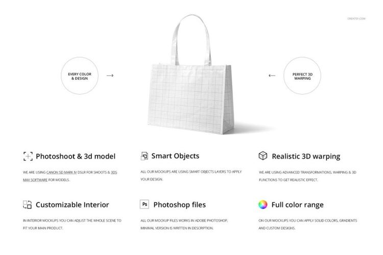 图穷联素材库 » 亚层无纺布环保购物袋品牌包装提案样机PSD模板 Lamina