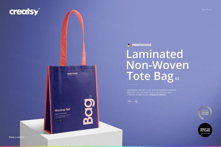 亚层无纺布环保购物袋品牌包装样机PSD模板 Laminate