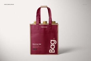 图穷联素材库 » 6瓶装无纺布手提袋葡萄酒袋包装设计样机PSD模板 6 Bot