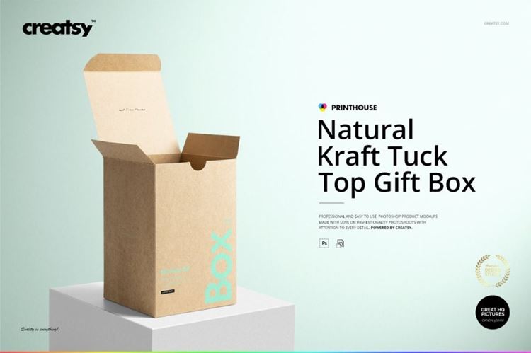 图穷联素材库 » 天然牛皮纸礼物盒礼品包装设计提案样机PSD模板 Kraft