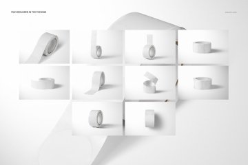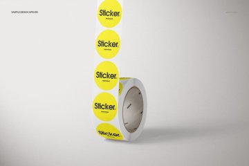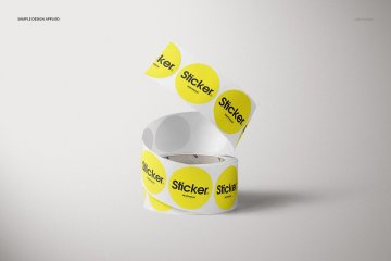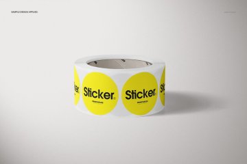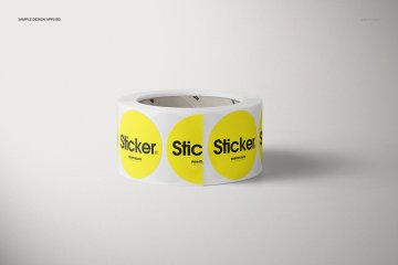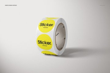 圆形不干胶贴纸胶带设计提案样机PSD模板 Round Rol