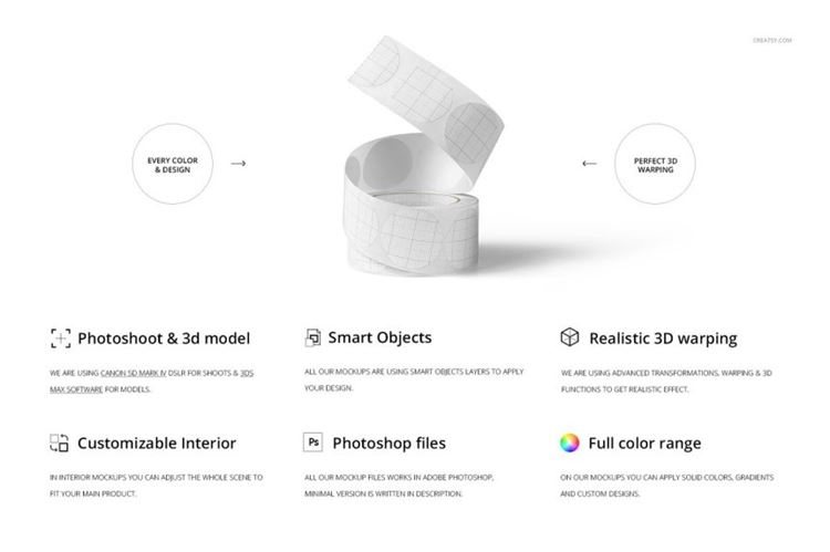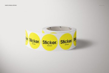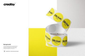 图穷联素材库 » 圆形不干胶贴纸胶带设计提案样机PSD模板 Round Rol