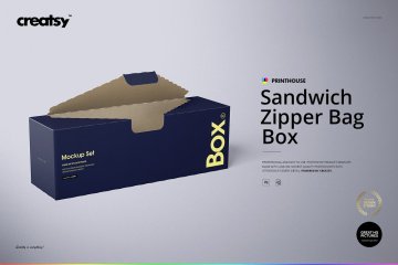 三明治食品易撕纸巾盒纸盒包装设计样机PSD模板 Sandwi