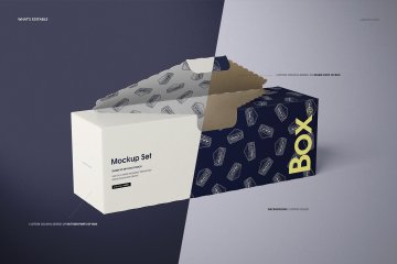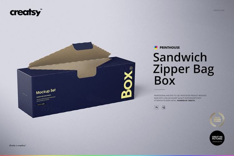图穷联素材库 » 三明治食品易撕纸巾盒纸盒包装设计样机PSD模板 Sandwi